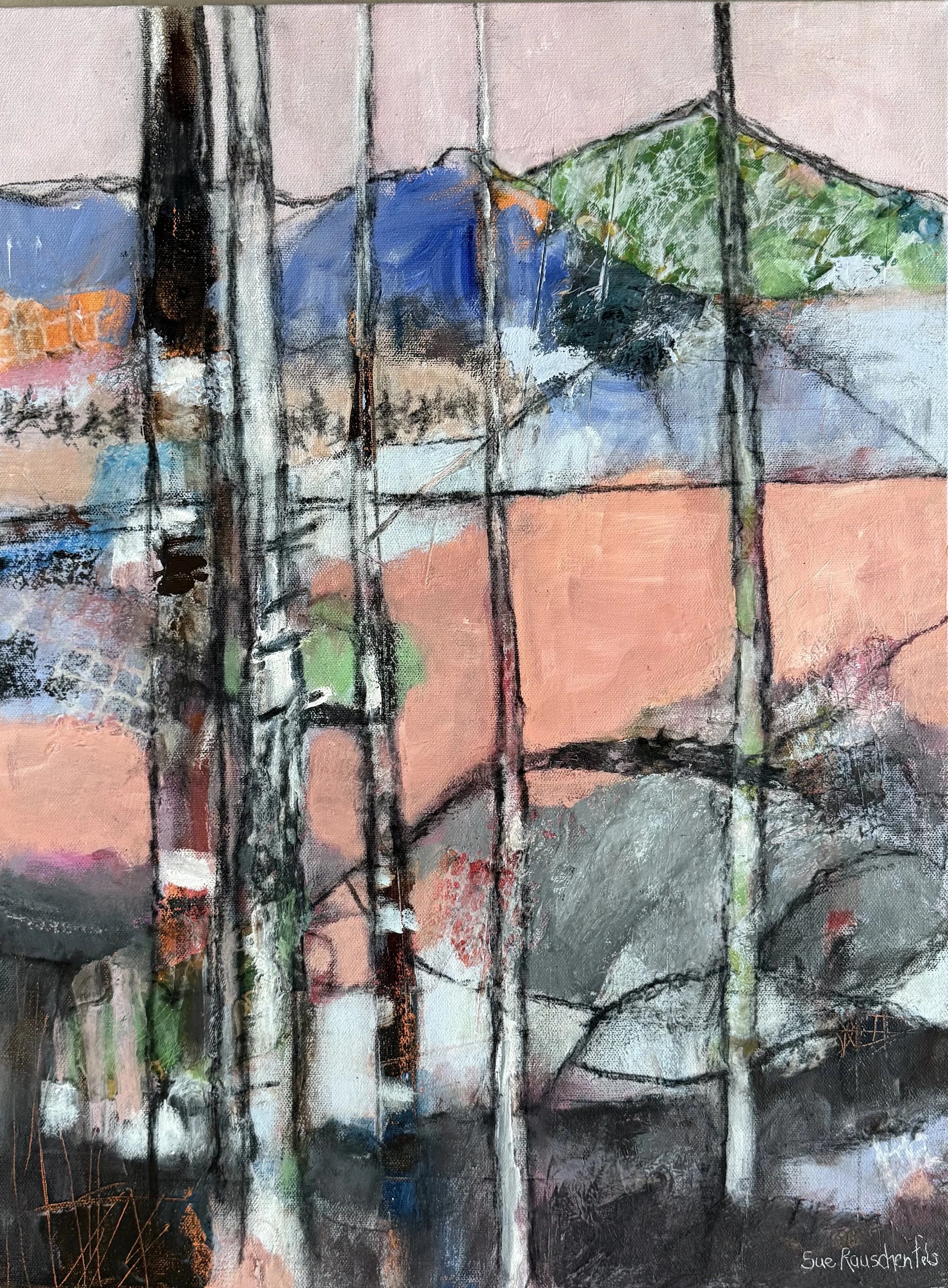 Sue Rauschenfels grew up in a small town in northern MN in the 1960’s where she spent a lot of time outdoors exploring. Nature was an important part of Sue’s childhood where she learned to play and create with her six sisters and neighborhood friends; building forts, climbing trees, and learning to navigate relationships. She has never lost her love for being in the woods and it is not surprising she enjoys painting trees from the heart and honoring them for their gifts. Sue also enjoys painting Sisterhood figurative artworks and is passionate to spread the message that sisters are to support all sisters and to lift each other up for best life deserved politically, socially and economically.