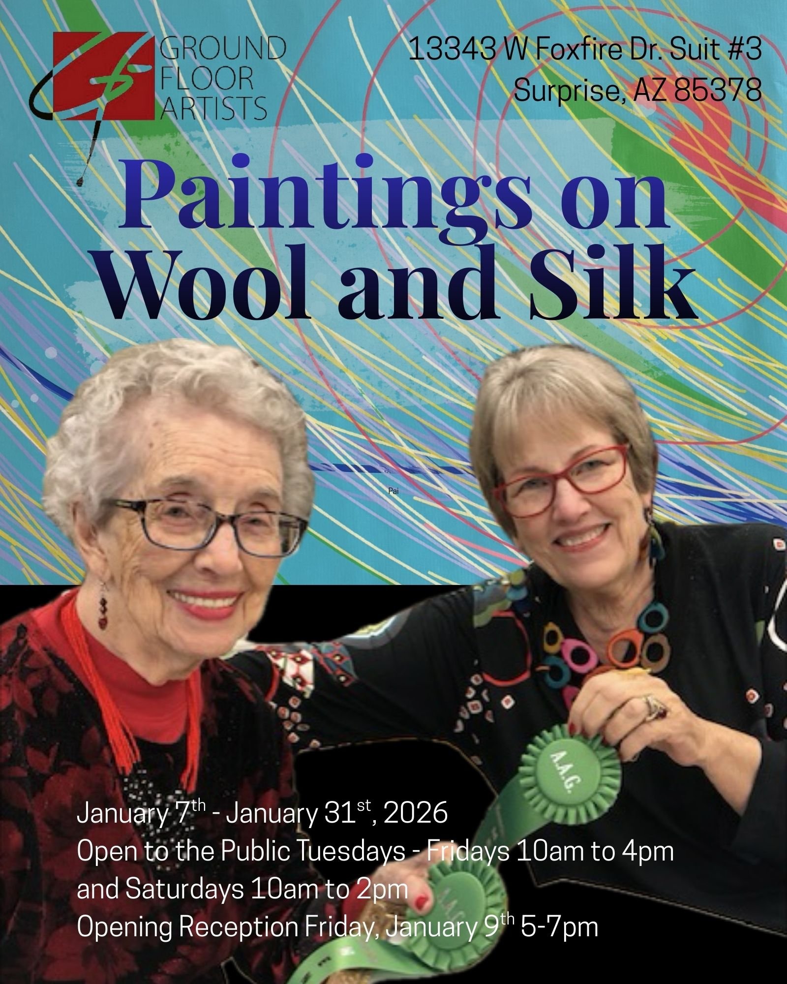 Ground Floor Artists is proud to present Paintings on Wool and Silk, a captivating dual-artist exhibition featuring a unique exploration of texture, fiber, and color. Running from January 7th through January 31st, 2026, this showcase highlights the intricate craftsmanship of artists working with unconventional, organic canvases.